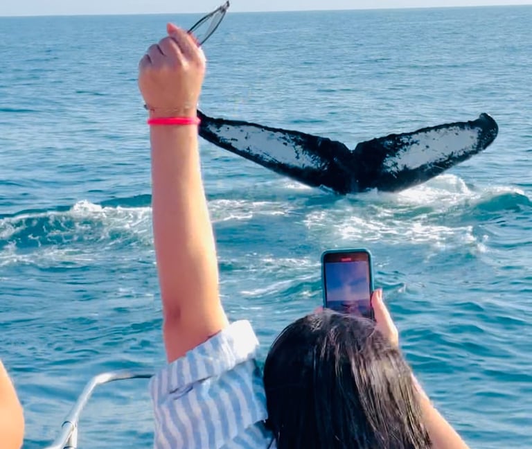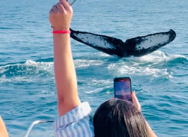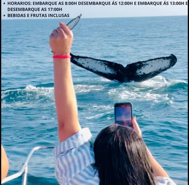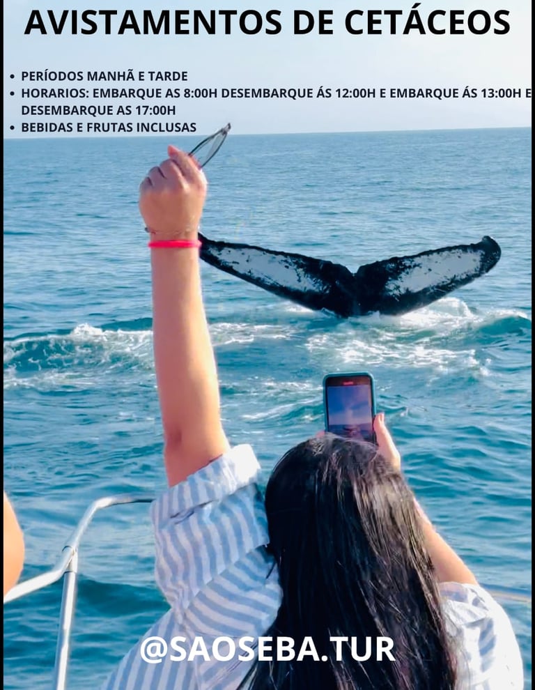Registre momentos inesquecíveis durante o avistamento de baleias, golfinhos e demais animais marinhos.